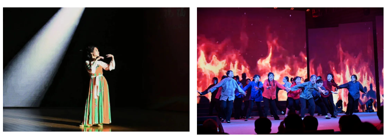 团体舞蹈节目《南京·活着》形神兼备,感染力极强,展现了南京百姓面临苦难遭遇时的生命状态。于悲惨境遇下仍顽强求生,是对南京百姓的刻画,亦是对我中华顽强励志、矢志不渝精神的重现,更激励当下的同学们,踏荆棘而无畏向前。