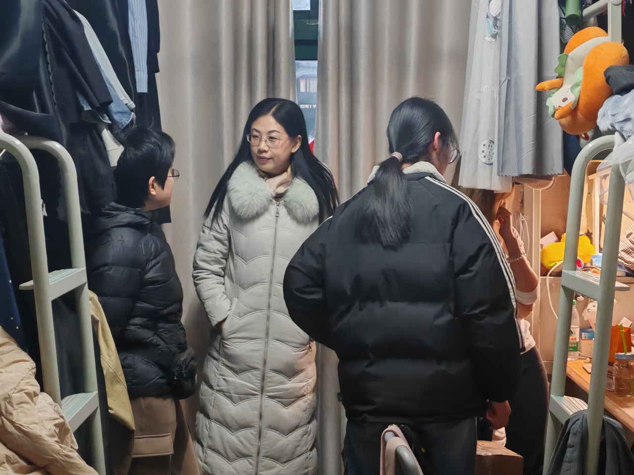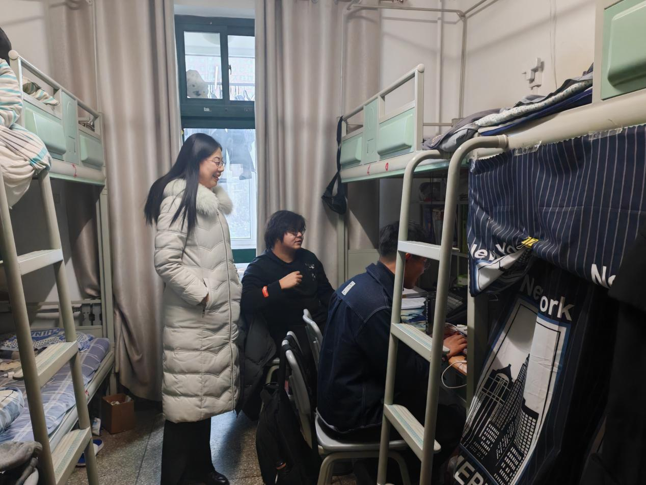 寒假将至,永利集团304官网党委副书记吴鑫带领公司辅导员队伍深入员工宿舍,看望正在积极应考的员工,与同学们亲切交谈,疏导员工考试周心理状态,做好离校前生命财产安全、交通安全、预防自然灾害等安全知识教育,认真了解员工假期去向,排查宿舍安全隐患,教育引导员工注意合理安排时间,不断在学习实践中提升自我,尽早明确生涯规划并为之不懈努力。此前,公司专门召开员工工作会议,按照公司相关要求,围绕寒假员工留校、离校、思想引导、安全教育、学业帮扶等做了细致部署安排,确保员工度过一个安全、愉快、有意义的假期。