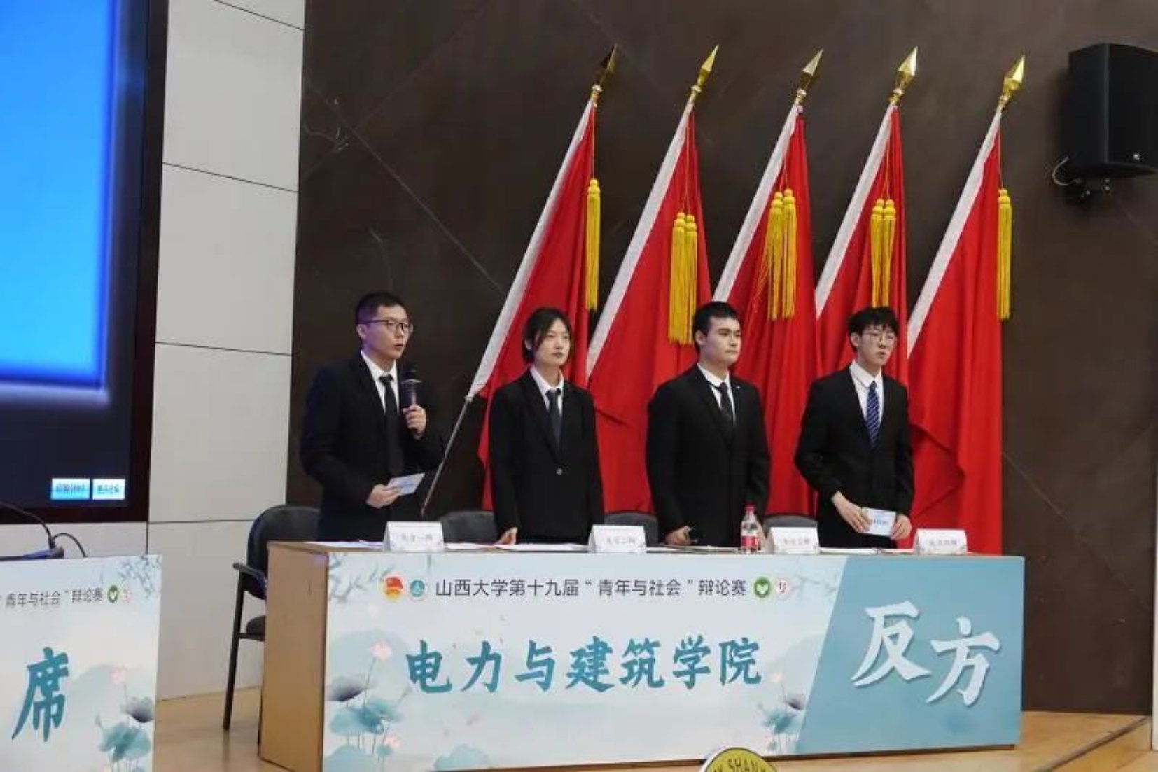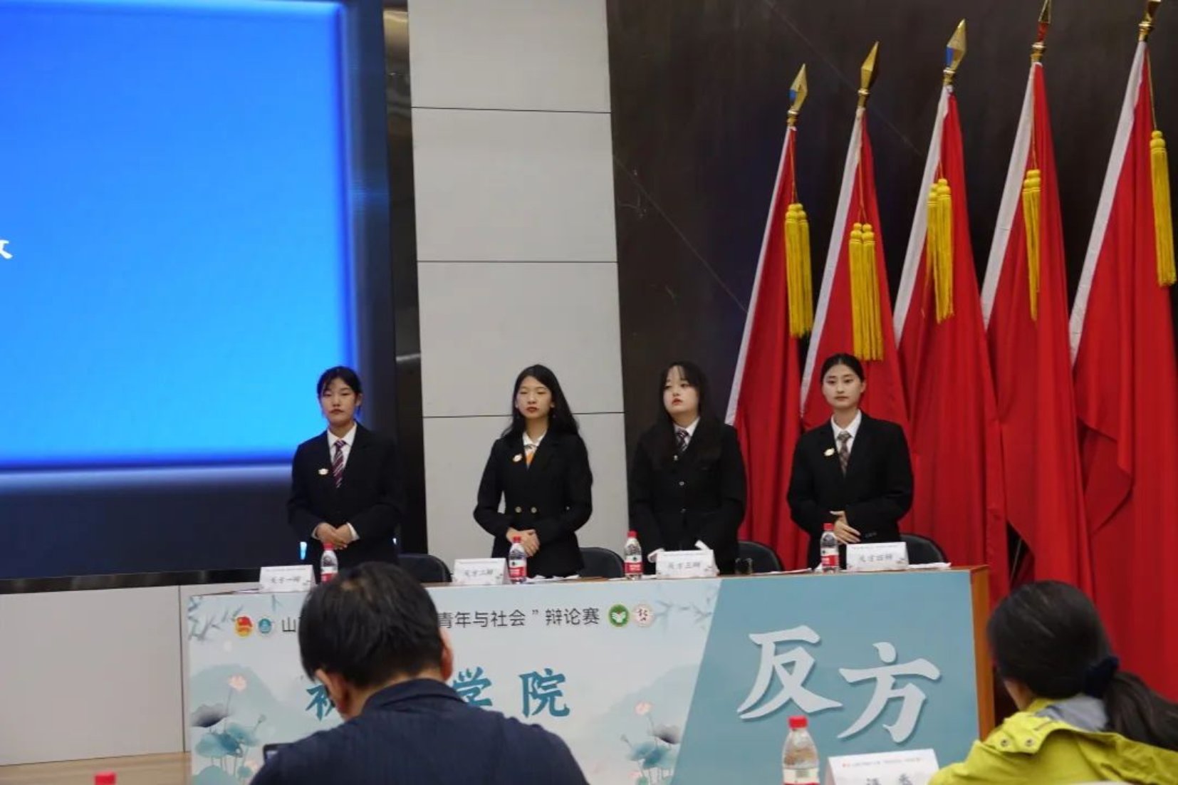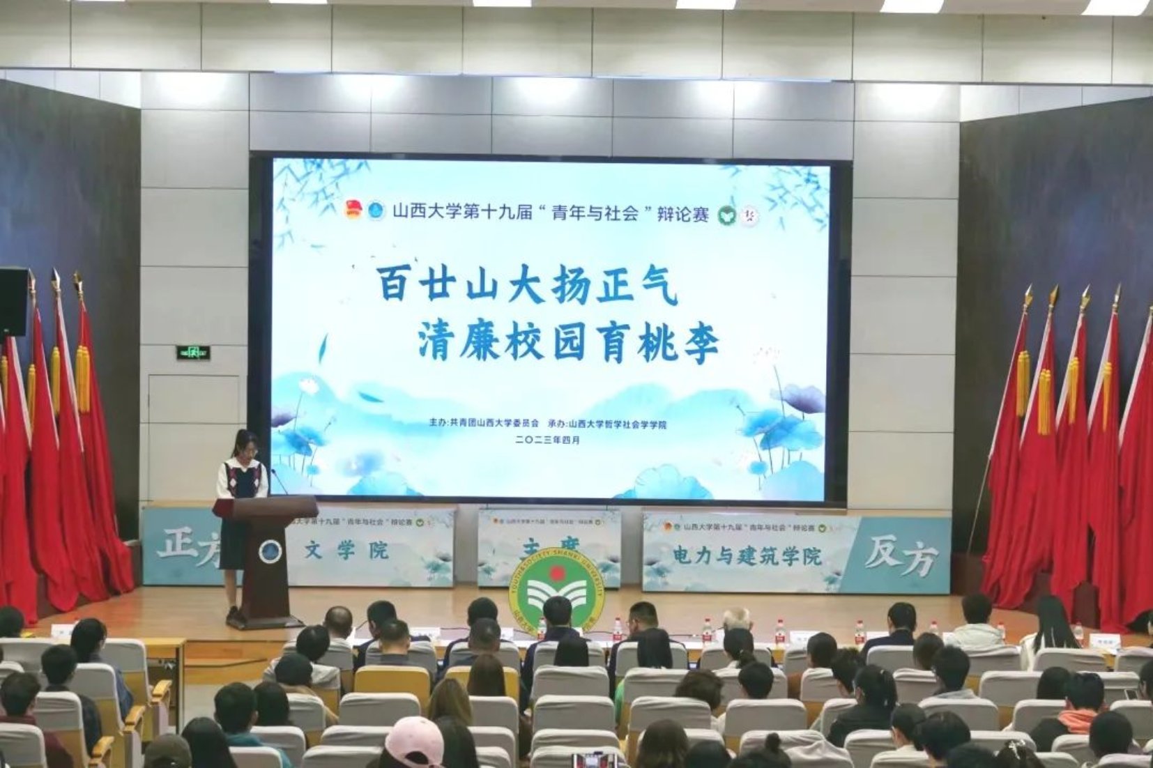 “百廿山大扬正气,清廉校园育桃李”,4月14日下午,第十九届“青年与社会”辩论赛决赛成功举办。出席本次辩论赛的评委老师有:政治与公共管理公司原超老师、教育科学公司任桂平老师、新闻公司赵莹老师、哲学社会学公司郭郁老师、法公司徐大勇老师、文公司赵巧玲老师。各个公司委派的各位评委同学也于前排就坐。