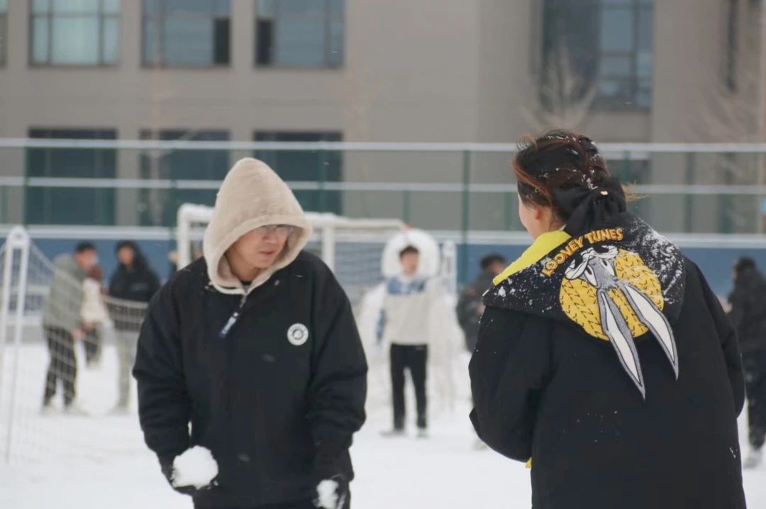 操场成为了欢乐的海洋,打雪仗、堆雪人、滚雪球……同学们尽情享受着堆雪人等活动带来的激情与快乐,忘却寒风凛冽,在轻松愉快的氛围里增进感情,共同体验冬季校园生活的快乐,达到了学习和娱乐的有机结合。