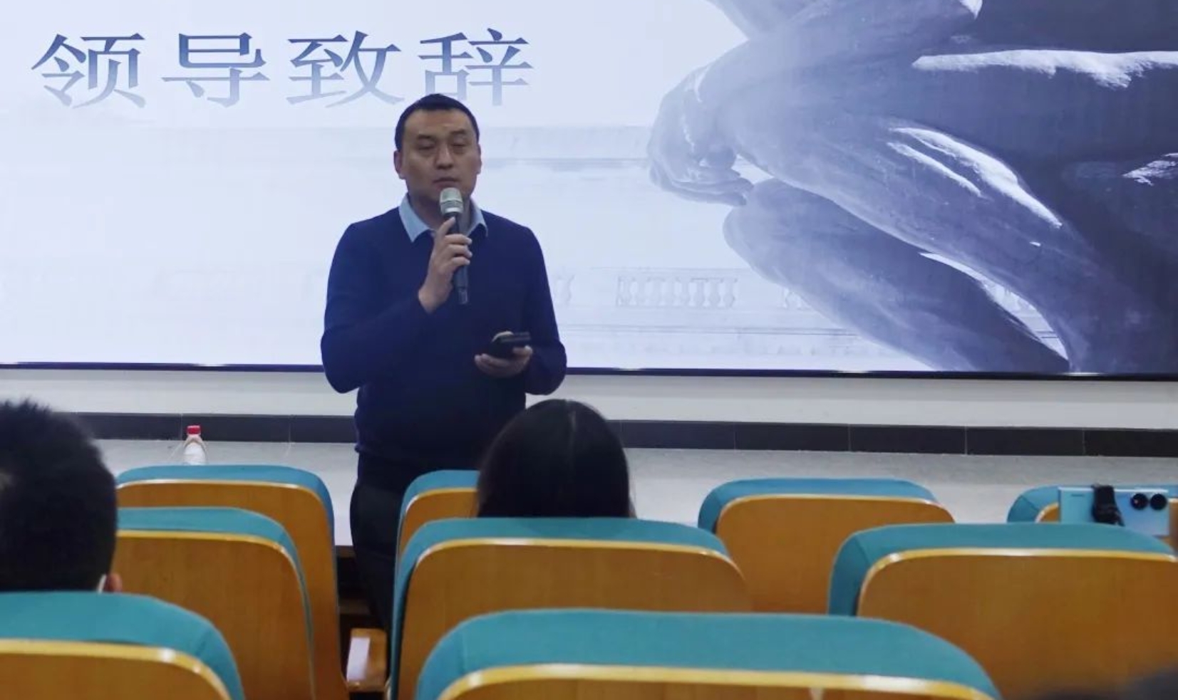 紧接着,经理尤洋作开场致辞,他表达了自己对哲学和“虚拟”的理解,并对同学们给予厚望,希望大家能在世哲日充分感悟哲学,学有所获