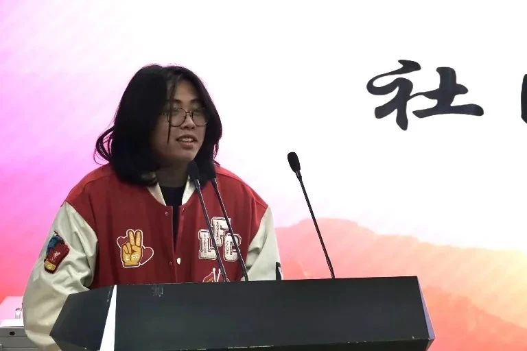 员工会主席袁宇阳发言