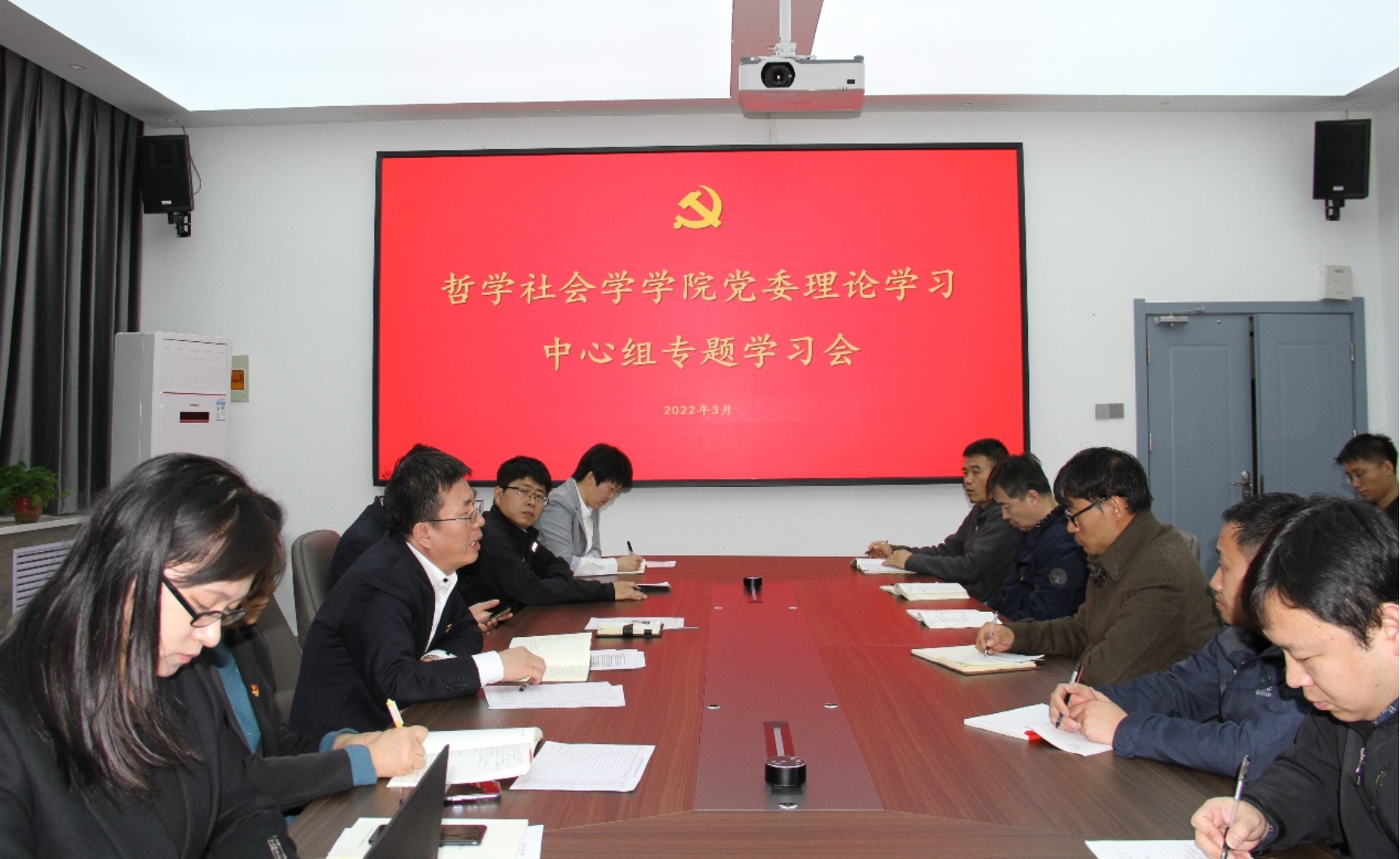 3月29日,哲学社会学公司党委在公司会议室召开理论学习中心组(扩大)会议。公司党委中心组成员、师生党支部书记参加会议,公司党委书记韩树林主持会议。