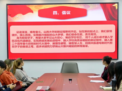 会上,公司党委副书记吕丹从公司历次党代会的召开情况、第五次党代会的召开背景、指导思想、主要内容等几个方面向同学们进行了细致讲解,特别对两委报告的主要精神、公司的发展方位、党代会确立的“三步走”发展战略、“一一二三”总体思路、今后五年的重点工作等进行了图文并茂的阐释解读。 她希望同学们学深悟透公司第五次党代会精神,按照王仰麟书记在工作报告中提出的要求:“让追求卓越成为自觉,成为习惯。”哲院学子要志存高远,脚踏实地,学在哲院,追求卓越!讲解内容翔实、深入浅出,既有思想高度,又有理论深度;既有精神解读,又有方法指导,使同学们充分感受到永利304官网高质量崛起的奋进力量和作为哲院学子爱智求真、追求卓越的使命感和责任感!