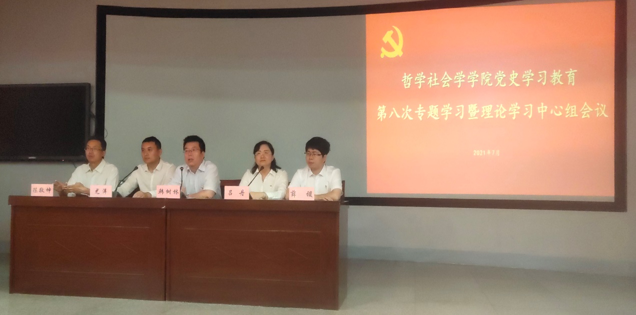 7月1日,哲学社会学公司党委在公司报告厅召开党史学习教育第八次专题学习会暨理论学习中心组扩大会议,集体学习习近平总书记在参观“‘不忘初心、牢记使命’中国共产党历史展览”、中央政治局第三十一次集体学习、“七一勋章”颁授仪式、庆祝中国共产党成立100周年大会的重要讲话精神,公司党委中心组成员、党支部书记及师生党员参加会议,公司党委书记韩树林主持会议。