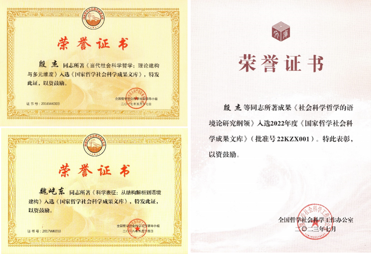 一流的学术成果强有力地支撑了专业建设和人才培养。哲学专业围绕学科特色研究方向,不断突出科研团队、重大项目对教学的反哺作用。基于国家社科基金重大项目“爱思唯尔《科学哲学手册》翻译与研究”开设多门中英文原著研读课程,以高水平的科研促进教学。基于国家社科基金重大项目“人工认知对自然认知挑战的哲学研究”,开设相关前沿和交叉学科课程7门,出版认知哲学丛书9部,译丛13部,编写教材2部,翻译教材2部。一流的科研成果有力地助推了哲学专业建设和人才培养工作。