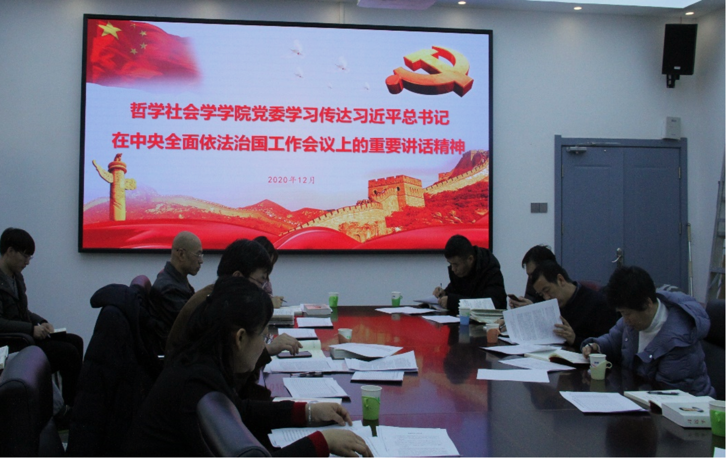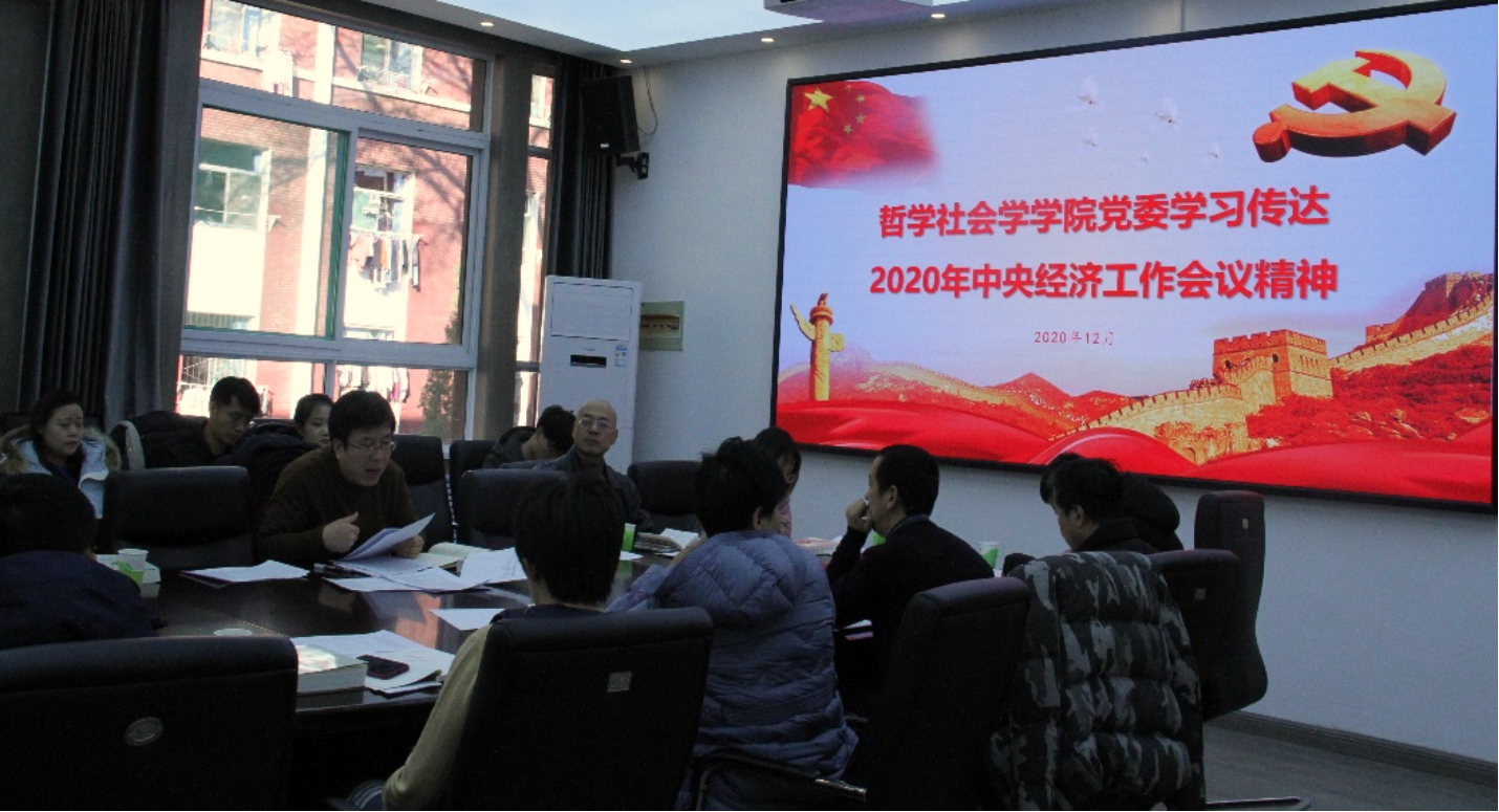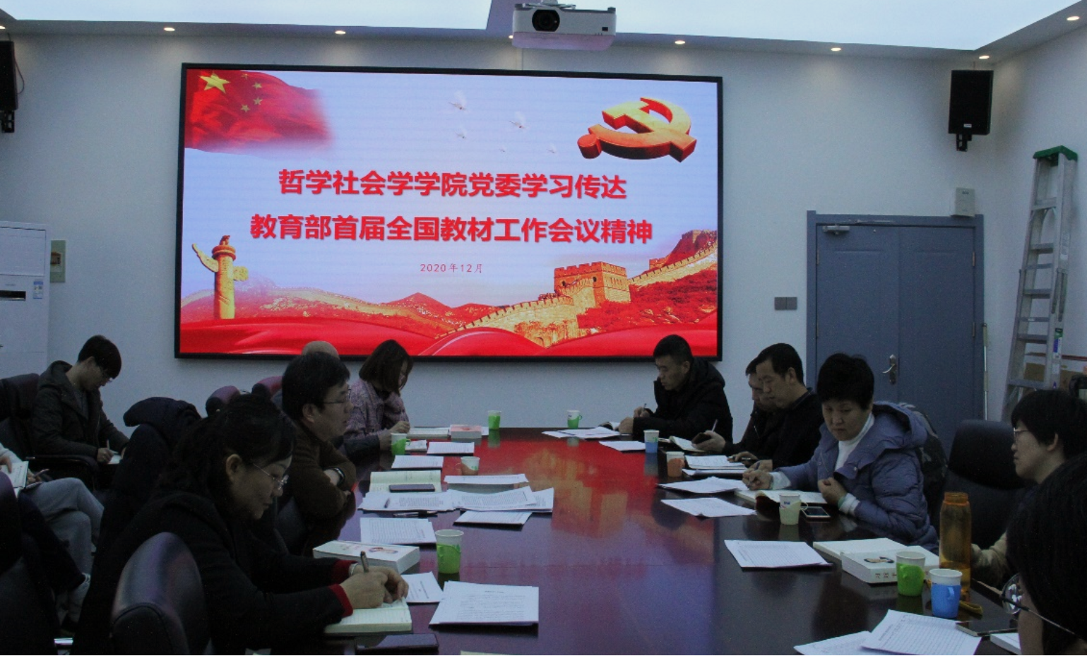 近日,哲学社会学公司党委在公司二楼会议室召开理论学习中心组(扩大)学习会议,学习传达2020年中央经济工作会议精神、习近平总书记在中央全面依法治国工作会议和全国劳动模范和先进工作者表彰大会上的重要讲话精神及教育部首届全国教材工作会议精神等。公司党委中心组成员及员工党支部书记参加了理论学习,公司党委书记韩树林主持会议。