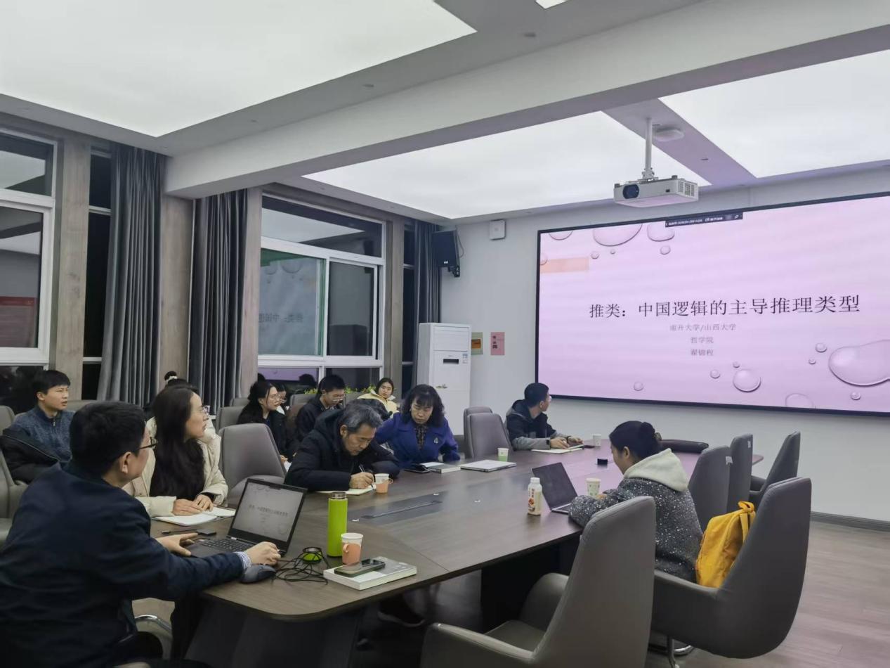 在交流讨论环节,公司师生围绕推类思想的核心问题展开热烈研讨。老师之间就推类与类推的术语使用展开讨论,翟教授认为二者均可使用,先秦典籍中多采用“推类”,现代研究中偶用“类推”,推类作为中国古代的主导推理方式,与“以名举实,以辞抒意,以说出故”的逻辑体系密切相关,蕴含丰富的推类成分。有老师提出中国人分类思维的独特性是否源于文化基因的疑问,翟教授表示,这一独特性源于传统文化的长期积淀,先秦时期形成的类思想历经传承,潜移默化地影响着国人的认知模式,不同文化背景是导致中西方思维差异的关键因素。还有老师从儒家伦理视角补充指出,孔子、孟子的分类更侧重道德政治层面,如人禽之别、君子小人之分,墨子、荀子则更侧重知识性分类,古人对类的运用往往带有伦理语境,与现代客观知识性分类存在区别,翟教授对这一观点表示认同,并强调古人对类思想的运用具有潜移默化的特征。